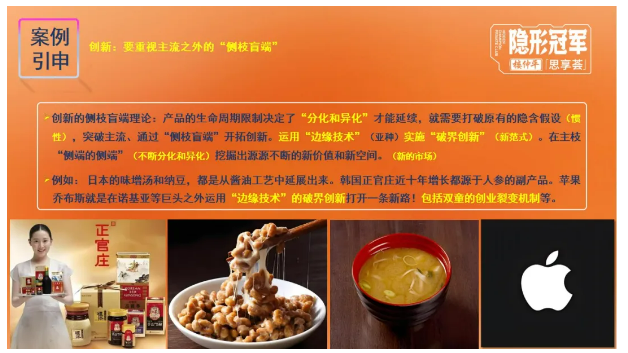 由于第一天課程內容非常精彩且豐富,我們將分上下兩篇為大家呈現,本篇的知識點(diǎn)將圍繞“認識創(chuàng )新”和“理解創(chuàng )新”兩部分展開(kāi),詳細為大家拆解:為什么說(shuō)能滿(mǎn)足人性?xún)仍凇?span style="-webkit-tap-highlight-color: transparent; margin: 0px; padding: 0px; outline: 0px; max-width: 100%; box-sizing: border-box !important; overflow-wrap: break-word !important;">喜新厭舊”的只有“創(chuàng )新”,企業(yè)發(fā)展有效的增長(cháng)引擎也只有“創(chuàng )新”!