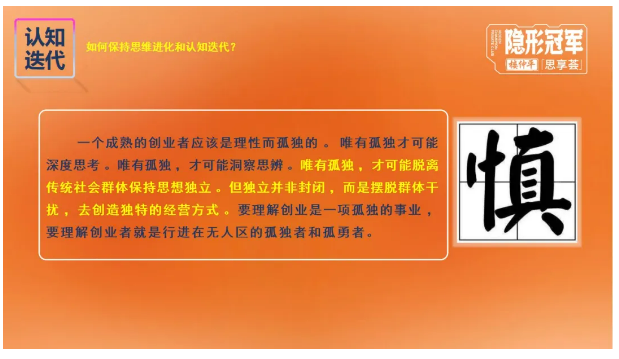 如果你是創(chuàng )業(yè)者、學(xué)習者、思想者,希望在經(jīng)營(yíng)領(lǐng)域有更深的思考和洞察,那么《隱形冠軍樓仲平思享薈》就是為你量身定制,歡迎掃碼咨詢(xún)第4期《隱形冠軍樓仲平思享薈》!