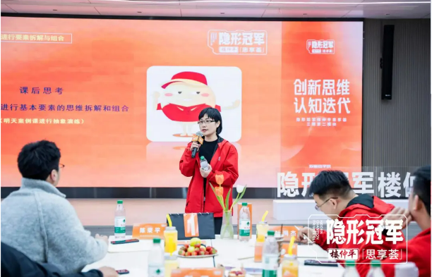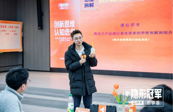 課程的第三部分,樓老師則重點(diǎn)教學(xué)如何“運用創(chuàng )新”。在交付過(guò)程中,他并不是一味地把知識點(diǎn)強加給同學(xué)們,而是通過(guò)思維訓練和經(jīng)典案例相結合,一步步引導大家理解創(chuàng )新的底層邏輯和原理,進(jìn)而熟練掌握“運用創(chuàng )新”的工具方法,水到渠成。