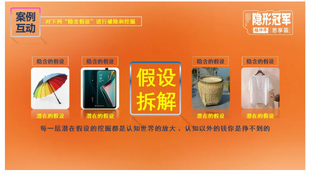 在理解了“思維的拆解和組合”之后,樓老師同樣采用思維訓練的方式,讓同學(xué)們理解“隱含的假設”。