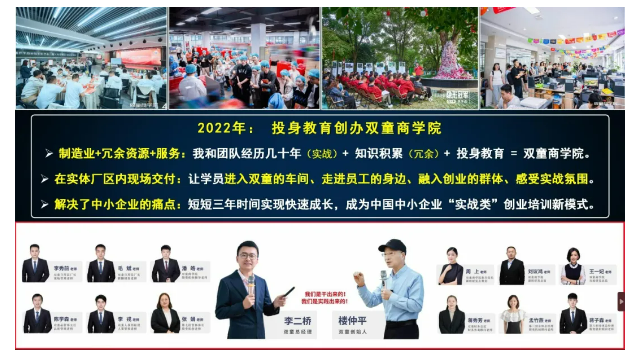 樓老師通過(guò)分享個(gè)人的成長(cháng)歷程,講述了自己從雞毛換糖到企業(yè)教練的經(jīng)歷。2022年,他毅然投身教育事業(yè),創(chuàng )辦了雙童商學(xué)院,這個(gè)“工廠(chǎng)里的商學(xué)院”是企培業(yè)一個(gè)特殊的存在,更注重從實(shí)踐中來(lái)、到實(shí)戰中去!同時(shí),他也相信,更接近現場(chǎng)實(shí)戰、挖掘出實(shí)踐智慧,是未來(lái)教培行業(yè)不得不思考的方向!
