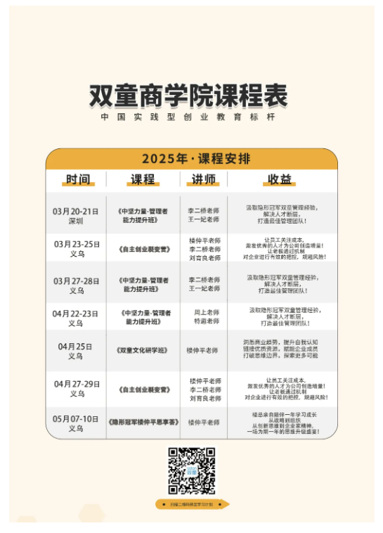 這些學(xué)員當中有剛起步的創(chuàng )業(yè)者、也有整個(gè)公司的核心團隊,他們對“雙童”抱著(zhù)好奇心,從全國各地齊聚義烏,共同探尋在巨變環(huán)境下,企業(yè)如何《穿越周期、韌性成長(cháng)》!
