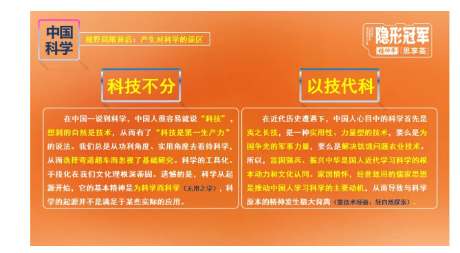 即便在鴉片戰爭之后,有識之士提出“師夷長(cháng)技以制夷”的主張里,無(wú)論是“師夷”還是“制夷”都是“被動(dòng)應對”和“功利性反饋” ,這也為國人從西學(xué)東漸開(kāi)始,就注重于西方技術(shù)而忽視其政治經(jīng)濟、社會(huì )文化和科學(xué)精神埋下隱患。這種視野局限,也讓國人產(chǎn)生了“以技代科、科技不分”的科學(xué)誤區。