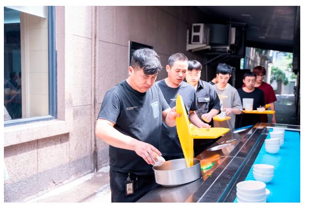 除了系統參觀(guān)外,外部來(lái)學(xué)習的學(xué)員們還能沉浸式體驗企業(yè)特色餐飲文化。在雙童員工餐廳,大家不僅能品嘗到食堂的美食,還能親歷"五個(gè)碗"的特色用餐儀式。學(xué)員們用餐后紛紛贊嘆:"“雙童”每個(gè)細節都彰顯著(zhù)'以人為本'的經(jīng)營(yíng)理念,三星級食堂的認證果然實(shí)至名歸!"
