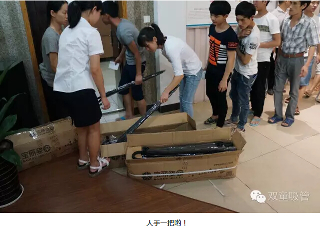團隊里的所有伙伴團結互助,有效溝通,這個(gè)團隊才能成功。吸管妞也希望大家可以在“雙童”這個(gè)優(yōu)秀的團隊里能夠有更美好的未來(lái)!學(xué)習會(huì )進(jìn)行到最后,還有驚喜相送呢!原來(lái)公司特地定制了“雙童”企業(yè)傘,分發(fā)給每一位員工,瞧瞧大家多開(kāi)心呀!