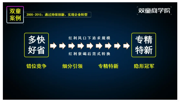 1)不斷打破隱含假設,帶領(lǐng)雙童從作坊企業(yè)一步步成為行業(yè)“隱形冠軍”: