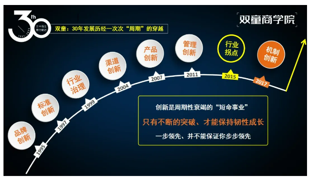 企業(yè)成長(cháng)的背后是創(chuàng )業(yè)者的持續成長(cháng),雙童能夠一次次成功穿越周期的背后,正是創(chuàng )始人樓仲平個(gè)人持續成長(cháng)、自我進(jìn)化、行知合一的結果!