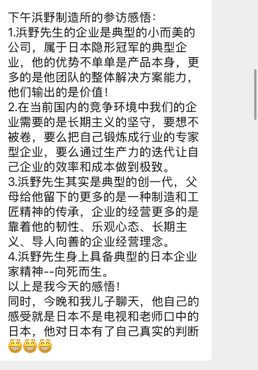 實(shí)際上,這不是“雙童”第一次來(lái)到浜野制作所,除了去年4月和11月,早在2017年,“雙童”管理團隊就研學(xué)過(guò)日本這家著(zhù)名的由傳統制造型企業(yè)成功轉型的典范,學(xué)習收獲頗豐。