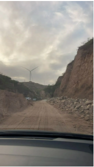 因為行駛的道路開(kāi)始從柏油路變成坎坷泥濘的土路,一路上顛簸崎嶇不說(shuō),中間有一段路程,更是黃沙漫天、塵土飛揚,能見(jiàn)度幾乎為“0”!車(chē)轍印剛壓出半尺深,轉眼就被山風(fēng)卷著(zhù)砂石填平,如果此時(shí)下車(chē)步行的話(huà),估計沒(méi)走幾步路,“膝蓋骨里都得灌進(jìn)二兩黃土”來(lái)!