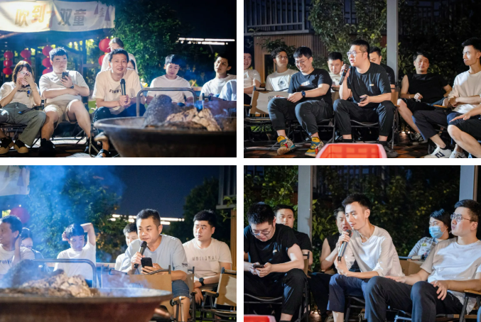 時(shí)至深夜,頭腦風(fēng)暴還在繼續。大家在屋頂花園以圍爐夜話(huà)的形式討論各經(jīng)營(yíng)模塊的創(chuàng )新亮點(diǎn),主題不限,暢所欲言,話(huà)題既有員工生活上的衣食住行,也有休閑娛樂(lè );既有管理形式升級、技術(shù)迭代,也有對外供應鏈開(kāi)發(fā)、銷(xiāo)售渠道開(kāi)發(fā)拓展……微風(fēng)習習下,雙童人的靈感不斷碰撞出新的火花,產(chǎn)生無(wú)限的光芒。