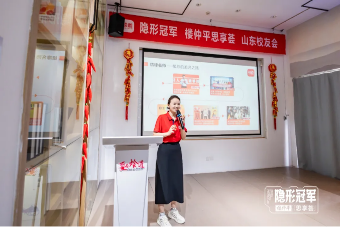 在專(zhuān)題分享環(huán)節,燴道運營(yíng)總經(jīng)理吳春云先是介紹了與雙童的結緣之路。2024年在山東淄博的一次活動(dòng)上,吳總首次聽(tīng)到樓仲平老師的分享,被他的經(jīng)營(yíng)理念所深深吸引,先后帶領(lǐng)公司小伙伴超30人次走進(jìn)雙童研學(xué)以及深度學(xué)習自主創(chuàng )業(yè)裂變機制。