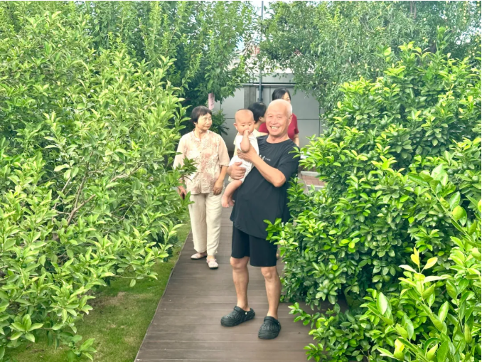 “媽媽?zhuān)莻€(gè)樹(shù)上有果子,我可以嘗一下嗎”隨著(zhù)小朋友的出聲,小徑旁繁茂的梨樹(shù)吸引了大家的注意?!爱斎豢梢?,小朋友,這個(gè)花園就是我們員工的后花園,隨便摘”,大家紛紛站在梨樹(shù)旁摘起了果子,樂(lè )樂(lè )呵呵地分享收獲的喜悅。