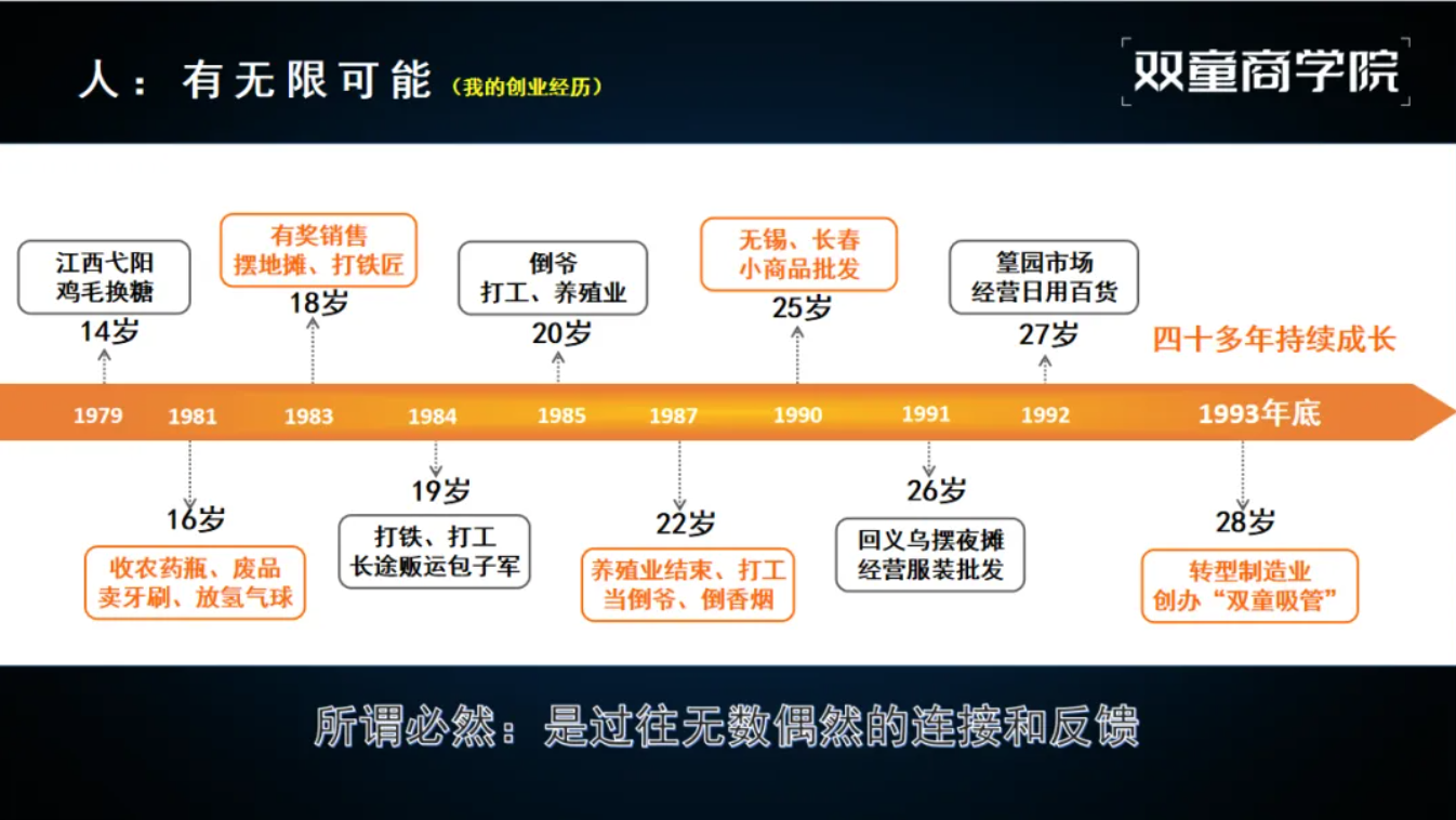 企業(yè)成長(cháng)的背后正是創(chuàng )業(yè)者的持續成長(cháng),得益于創(chuàng )始人樓仲平的持續自我進(jìn)化,雙童才能在31年間一次次成功穿越越來(lái)越難的經(jīng)濟周期。