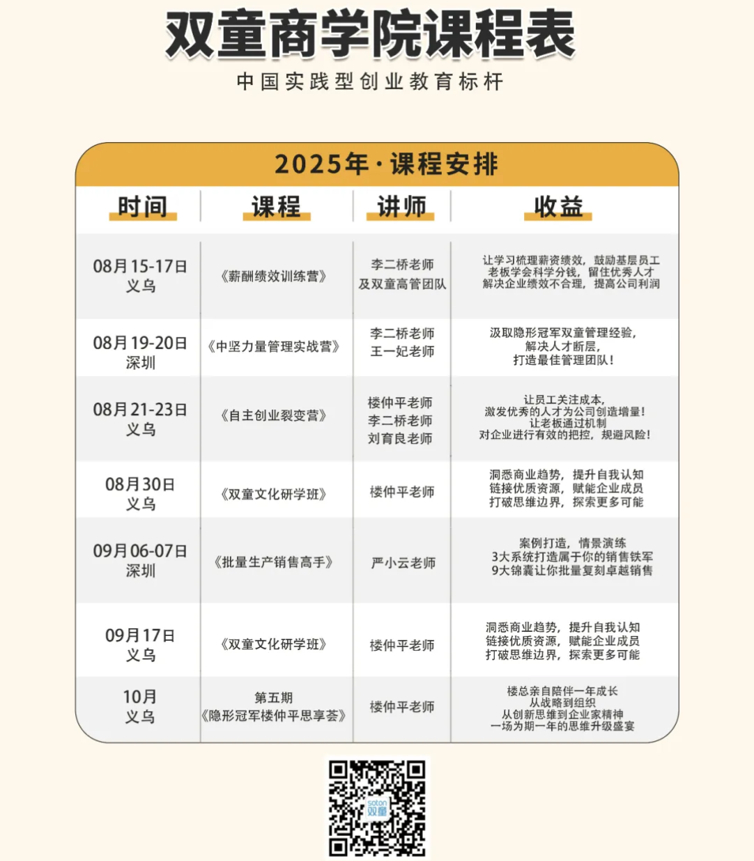 ●百位創(chuàng )業(yè)者的標桿學(xué)習之旅!組團加入《雙童文化研學(xué)班》,深度研學(xué)創(chuàng )業(yè)者與企業(yè)的“韌性成長(cháng)”!
