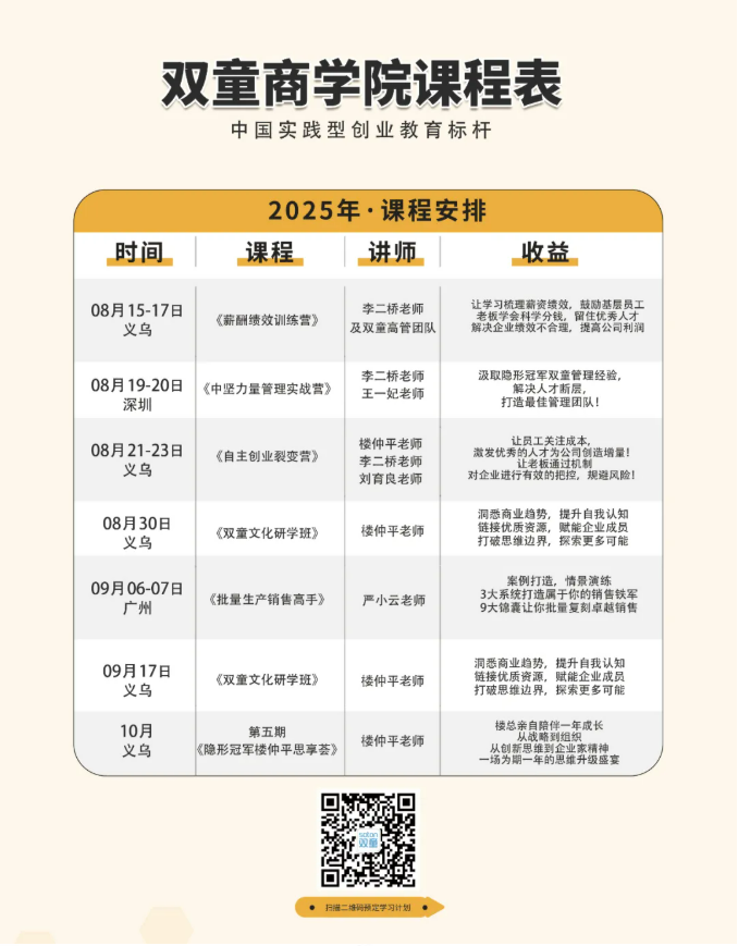 ●【雙童商學(xué)院近期課表】《自主創(chuàng )業(yè)裂變營(yíng)》備受期待!超1000位學(xué)員將匯聚雙童共同學(xué)習!