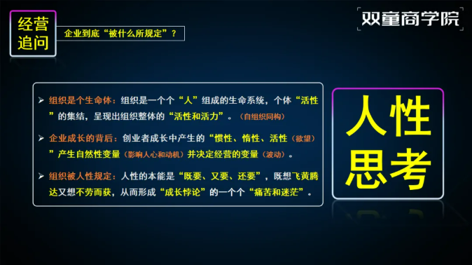 另一方面,也是基于雙童目前面對的經(jīng)營(yíng)挑戰。尤其從去年前年開(kāi)始,由于個(gè)別創(chuàng )業(yè)體經(jīng)營(yíng)層過(guò)分自我和貪婪,失去應有的“敬畏和心性”,導致幾個(gè)創(chuàng )業(yè)體經(jīng)營(yíng)產(chǎn)生虧損。銷(xiāo)售經(jīng)營(yíng)體的個(gè)別業(yè)務(wù)員突破規則底線(xiàn),觸碰高壓線(xiàn)產(chǎn)生刑事案件。這些惡劣事件反映的不僅僅是因為外部環(huán)境問(wèn)題,更多是“內在心性”出現了嚴重問(wèn)題!