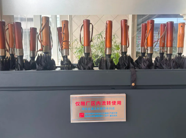 如今,"雙童"的流動(dòng)傘設施已形成完善的服務(wù)體系。在行政樓、生產(chǎn)車(chē)間、餐廳、宿舍等6個(gè)人流量大的區域,300余把雨傘隨時(shí)待命,確保員工在廠(chǎng)區任何位置都能就近取用,真正實(shí)現了"雨天無(wú)憂(yōu)",最大化地解決員工雨天出行難的窘境。