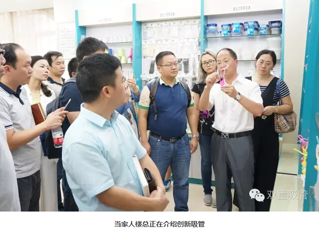 接著(zhù),企業(yè)主們來(lái)到了樣品房。大家被琳瑯滿(mǎn)目的各類(lèi)吸管所吸引,尤其是各類(lèi)功能情趣的創(chuàng )新吸管,更是讓每個(gè)人都嘖嘖稱(chēng)奇,贊嘆“雙童”的創(chuàng )新力之強。