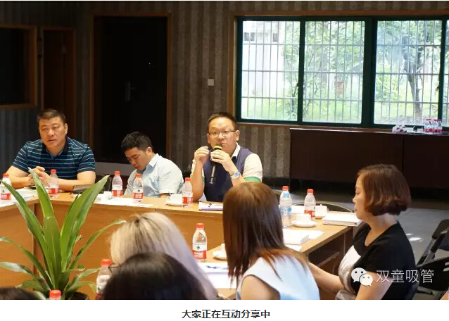 剛到“雙童”,大家就來(lái)到九樓閣進(jìn)行交流分享,二當家李二橋圍繞“雙童”的發(fā)展歷程和經(jīng)營(yíng)理念進(jìn)行分享,在聽(tīng)了“雙童”的發(fā)展歷程后,大家紛紛敬佩“雙童”22年專(zhuān)注一根吸管的精神。