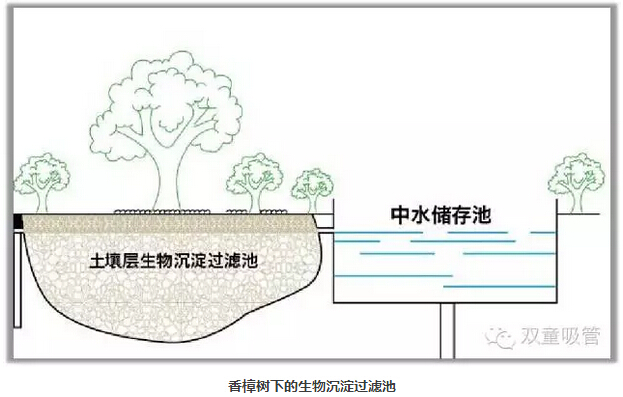 在這過(guò)程中,我們的“雙童1號樹(shù)”也起到了大作用呢!在香樟樹(shù)的下面有一個(gè)土壤層生物沉淀過(guò)濾池,經(jīng)過(guò)技術(shù)處理之后的水匯聚到這棵大香樟樹(shù)下,再次進(jìn)行生物吸附處理,通過(guò)樹(shù)木的根須對水中的物質(zhì)、養分進(jìn)行吸附,所以這些樹(shù)木都生長(cháng)的非常好。