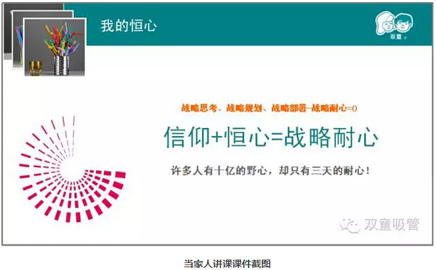 接下來(lái)就是我們的當家人樓總的分享時(shí)間啦!本次樓總的演講主題是《隱形冠軍背后的“匠人思維”》,由于時(shí)間關(guān)系,樓總把原本需要半天講完的課程壓縮到了45分鐘,精煉地介紹了“雙童”的人本經(jīng)營(yíng)理念和在企業(yè)經(jīng)營(yíng)過(guò)程當中他認為要堅持的三顆心:初心、恒心、平常心,講述了他如何22年堅持只做一根吸管,靠一根吸管打天下的背后故事。演講過(guò)程中,樓總坦言要把“雙童”做成百年老店的豪言也得到了大家一致的掌聲和鼓勵。