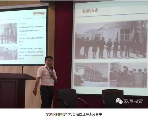 接下來(lái),專(zhuān)注于以磁鐵石產(chǎn)品為切口,打造電動(dòng)車(chē)、空調、電梯的生態(tài)圈,為客戶(hù)提供極致新材器的寧波松科磁材有限公司總經(jīng)理汪維杰,作了《專(zhuān)注于新能源領(lǐng)域用磁鐵的升級之路》的演講。專(zhuān)門(mén)生產(chǎn)汽車(chē)用過(guò)濾紙的典型的小巨人型企業(yè)、海水淡化用濾材市場(chǎng)占有率位居世界第一的阿波制紙上海有限公司總經(jīng)理東俊二,作了《活躍于產(chǎn)業(yè)功能領(lǐng)域的阿波制紙的今昔》的演講。