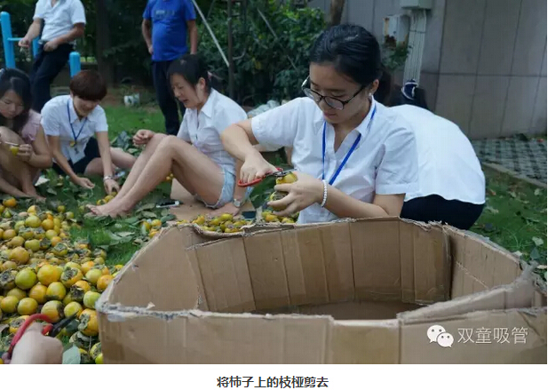搬來(lái)梯子,準備好箱子,采摘正式開(kāi)始!瞧我們的采摘員“掛”在柿子樹(shù)上那叫一樂(lè )呵,還揚言說(shuō)“別急,等我吃飽了再幫你們摘!” 為此,我們還特地做了一把巨型剪刀,把樹(shù)上的每一個(gè)柿子都收入囊中!