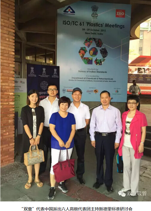 2015年10月6日,ISO TC61國際標準化組織年會(huì )在印度新德里召開(kāi),作為最后一次國際標準起草工作的定稿工作,“雙童”代表中國派出了強大的六人技術(shù)代表團。經(jīng)過(guò)幾天緊張的討論,“雙童”會(huì )同各參與主席國對《聚丙烯飲用吸管規范》送審稿的各項條文進(jìn)行最終的程序性確認,在參與各國代表一致同意下形成了《聚丙烯飲用吸管規范》ISO國際標準報批稿,提交給瑞士日內瓦的ISO國際標準化組織最終審定。