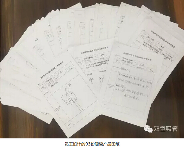 說(shuō)到企業(yè)創(chuàng )新工作時(shí),當家人樓總表示我們的很多吸管創(chuàng )意都來(lái)源于員工,并向高山先生展示了我們歷年來(lái)做的創(chuàng )新大賽的作品成果,看到這么多來(lái)自員工們獨特的創(chuàng )意,高山先生非常驚訝“雙童”員工的創(chuàng )造力和想象力!