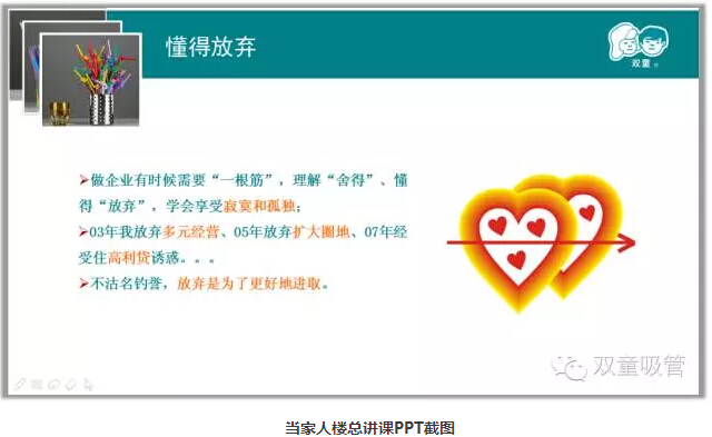在現代社會(huì )中,不少人把企業(yè)經(jīng)營(yíng)管理與人情社交關(guān)系掛上鉤,認為”朋友多好辦事“。而當家人樓總卻一直認為,朋友多并不一定好辦事,有時(shí)候甚至會(huì )阻礙你的發(fā)展!這話(huà)從何說(shuō)起呢?接下來(lái)吸管妞就向大家詳細闡釋一下當家人樓總在經(jīng)營(yíng)“雙童”過(guò)程中一直堅守的“企業(yè)強弱關(guān)系”理念吧!