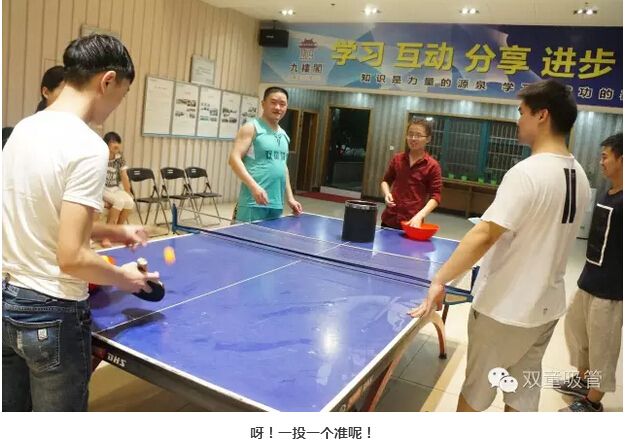 乒乓球社團成立于2015512日,社團成立以來(lái)組織了多次社團活動(dòng)。乒乓球不愧于國球,這普及率真當是全民的!雙童員工們十有八九都會(huì )打呢!別以為我們的乒乓球賽只是打打乒乓球哦,運送乒乓球、吹乒乓球、夾乒乓球……只有你想不到,沒(méi)有做不到呀!