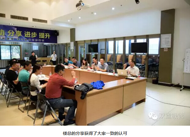 參觀(guān)后,大家終于有機會(huì )坐下來(lái)分享交流。首先,當家人樓總和大家分享了《隱形冠軍背后的“匠人”思維》課程的部分內容,講到了“雙童”倡導的“匠人之心”——“初心”、“恒心”、“平常心”。只有初心存正,企業(yè)的目標才會(huì )自然而至。一生做好一件事就很了不起了。”