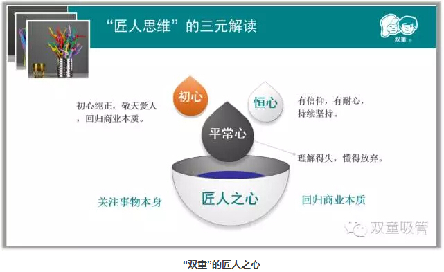 首先,當家人樓總分享了自己30多年的創(chuàng )業(yè)經(jīng)歷,在不斷失敗的教訓中,他選擇了把一根吸管做精、做細!通過(guò)二十多年積累,“雙童”初步形成了專(zhuān)注經(jīng)營(yíng)、創(chuàng )新進(jìn)取、綠色低碳、和諧共贏(yíng)和精細化管理的發(fā)展理念,“雙童”也發(fā)展的越來(lái)越好!而這些都離不開(kāi)“匠心”。