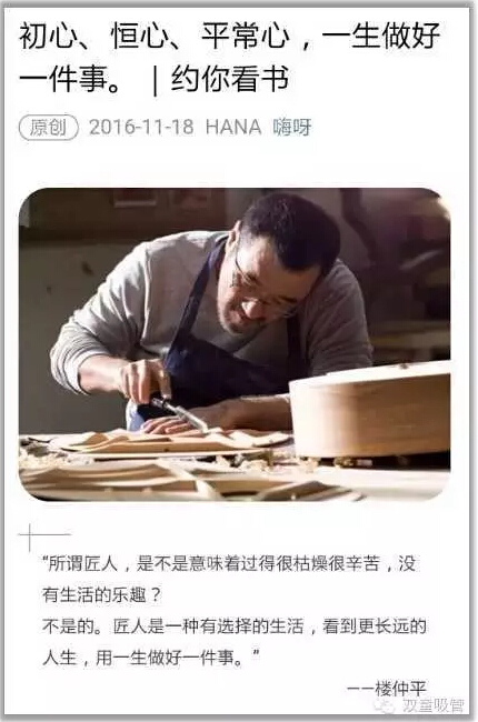 不是的。匠人是一種有選擇的生活,看到更長(cháng)遠的人生,用一生做好一件事。
