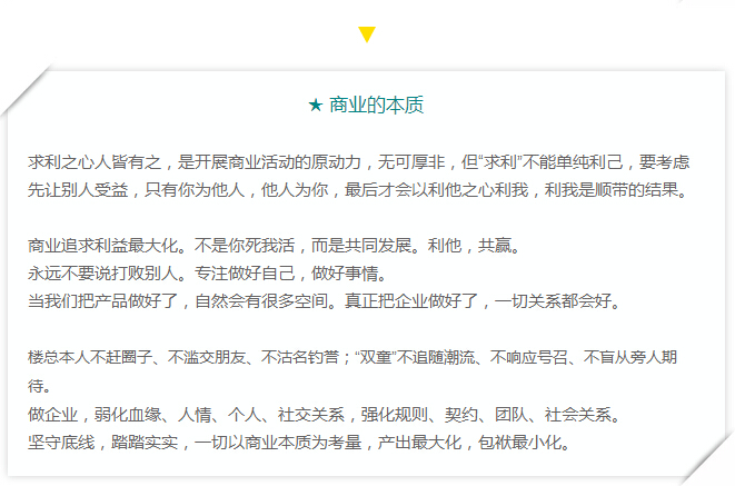 摘選部分筆記,濃縮的語(yǔ)句后是豐厚的經(jīng)驗和感悟,值得思索。在看我的筆記之前,不妨想一想,然后寫(xiě)下你對這樣幾個(gè)概念的理解:商業(yè)本質(zhì);匠人之心。閱讀中再與樓總所說(shuō)對照思考,收獲會(huì )更多。