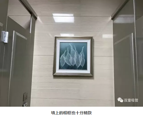 進(jìn)入衛生間時(shí),門(mén)上有“推”、“拉”等提示,墻上的相框也十分精致!