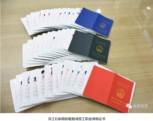 幾個(gè)月下來(lái),通過(guò)公司和員工們一起努力,“雙童”的近百位員工考取了國家吸管成型工職業(yè)資格證書(shū),這也意味著(zhù)“雙童”的員工們成為了一個(gè)個(gè)名副其實(shí)的吸管專(zhuān)家,正如當家人樓總的那樣,全球最頂尖的吸管專(zhuān)家一定在“雙童”!