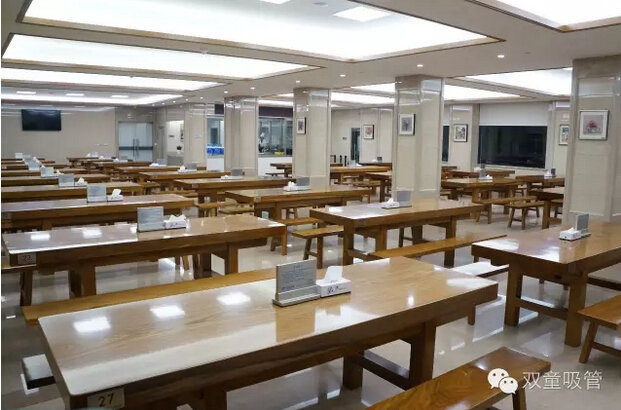 今年十月份,“雙童”的五星級員工餐廳全面改造完成。餐廳內的設施都配備了最好的硬件,就拿桌子來(lái)說(shuō),員工餐廳的每一張桌子重達四五百斤,是木中之王的柚木定制而成,每一張就要15000元。