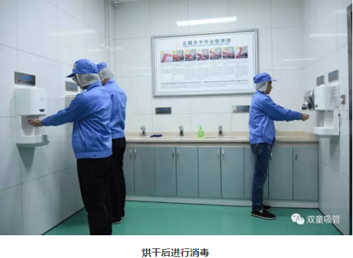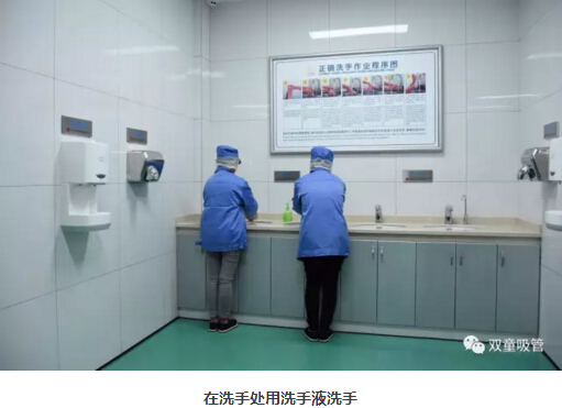 4、整理完衣物后,來(lái)到洗手消毒間,進(jìn)行洗手、烘干、消毒。