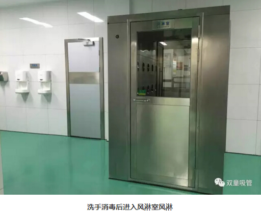5、完成洗手消毒之后,要進(jìn)入風(fēng)淋室進(jìn)行風(fēng)淋除塵。
