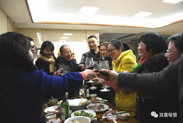席間也少不了互相敬酒的環(huán)節啦!大家拿著(zhù)酒杯不斷的干杯敬酒,感謝同事們一年下來(lái)的配合幫助。而最近剛剛喜得小公主的李總更是人逢喜事精神爽,直接拿茅臺干上了,多霸氣!可得給我們樓總悠著(zhù)點(diǎn)喲!