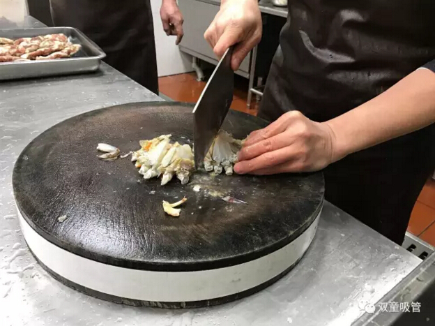十五、蟹殼切分兩半,切分過(guò)程中的膏體流失盡量收集,不要遺棄。