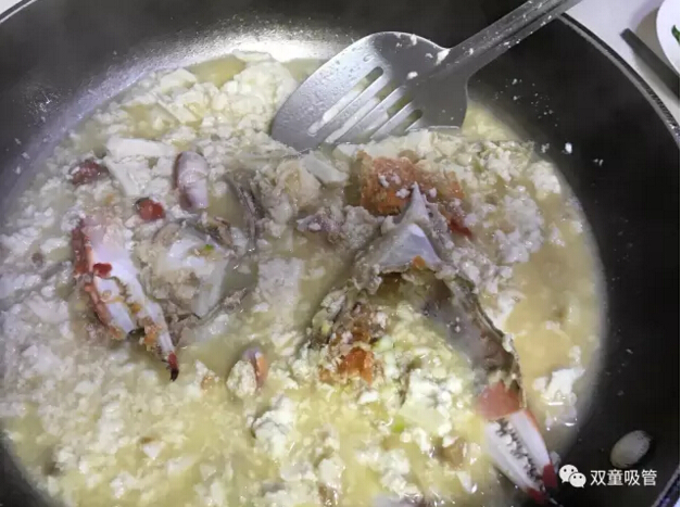 九、掰開(kāi)后的螃蟹千萬(wàn)不要再清洗了,包括黑乎乎的膏體千萬(wàn)不要洗清哦!