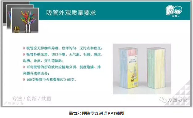 廠(chǎng)長(cháng)李秀前再次登臺和大家分享了《衛生秩序保障作業(yè)規范》,介紹了在進(jìn)入車(chē)間前洗手消毒等一系列的操作步驟,以及進(jìn)入車(chē)間后在工作崗位上的注意事項。品管部經(jīng)理則給新同事講起了產(chǎn)品質(zhì)量的相關(guān)內容,從吸管的材質(zhì)、分類(lèi)開(kāi)始講起一直到吸管的各項質(zhì)量要求、衛生要求,引導員工們提升質(zhì)量意識!