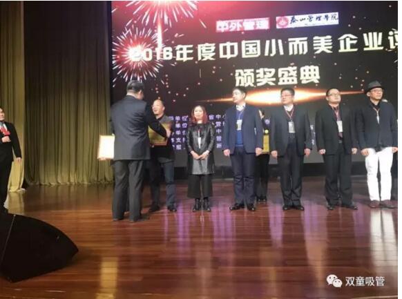 2月26日下午,當家人樓總和二當家李總受邀前往《中外管理》雜志社與泰山管理學(xué)院聯(lián)合舉辦的2016年度中國小而美企業(yè)頒獎盛典。此次評選有全國各地56家隱形冠軍企業(yè)的參選申請,經(jīng)過(guò)專(zhuān)家評審委員會(huì )的評選,共有11家企業(yè)脫穎而出,榮獲“2016年度中國小而美企業(yè)”,“雙童”也名列其中!
