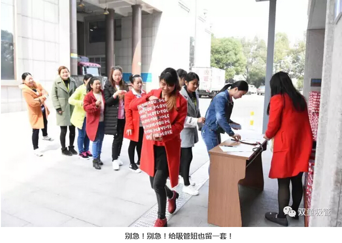 一套套紅彤彤的禮物套裝,男同胞們就是想拿,也不好意思呀!哈哈,看我們的女神們排著(zhù)隊高興的樣子,別急別急,留一套給吸管妞哈!