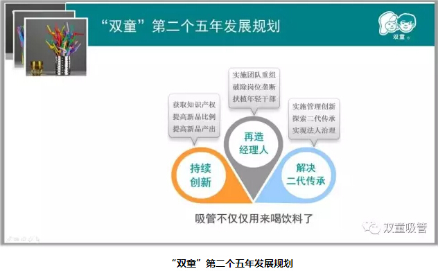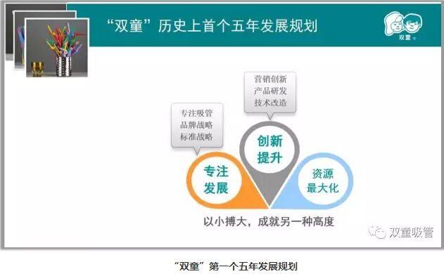 “雙童”堅持走專(zhuān)業(yè)化的發(fā)展道路,堅守實(shí)業(yè),不多元,不浮躁,不急功近利,強調“以小博大”,“博”不是拼搏的搏,而是博大的博,就是要以博大的胸懷將一根吸管做精、做強、做到極致。