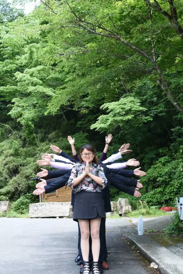 吸管妞在這里也和大家分享一個(gè)小細節:下圖中的大合照,吸管妞和我們的美女同事坐在兩條白色的椅子上。在最右邊還有一條黑色的椅子。這些椅子就這樣露天放在景區里,供游人休憩合影所用。雖然剛下過(guò)小雨,這些椅子卻干干凈凈,沒(méi)有水滴,也沒(méi)有銹跡,可以想見(jiàn)日本人的及時(shí)維護和細心程度。在每批游客用完椅子后,都會(huì )細心地將椅子放回原位。這是日本人的自律,值得大家一起學(xué)習!