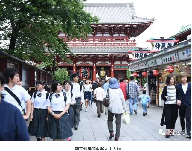 為了了解日本民族文化,我們自然也要去一次東京都內最古老的寺廟——淺草寺。據導游介紹,在推古天皇三十六年,有兩個(gè)漁民在宮戶(hù)川捕魚(yú),撈起了一座高5.5厘米的金觀(guān)音像,附近人家就集資修建了一座廟宇供奉這尊佛像,這就是淺草寺。到江戶(hù)初期,德川家康重建淺草寺,使它變成一座大群寺院,并成為附近江戶(hù)市民的游樂(lè )之地。一直至今,淺草寺香火繁盛,簽很靈驗。