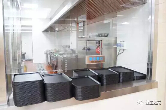 “雙童”公司的廚房是透明的。開(kāi)放式的透明廚房可以清晰地看到廚房?jì)鹊墓ぷ髑榫?,也讓員工們對餐食質(zhì)量徹底放心。除此之外,廚房還設有面點(diǎn)間、冷藏庫、糧油庫、清洗間、更衣間等,為廚房工作提供了強有力的基礎保障。